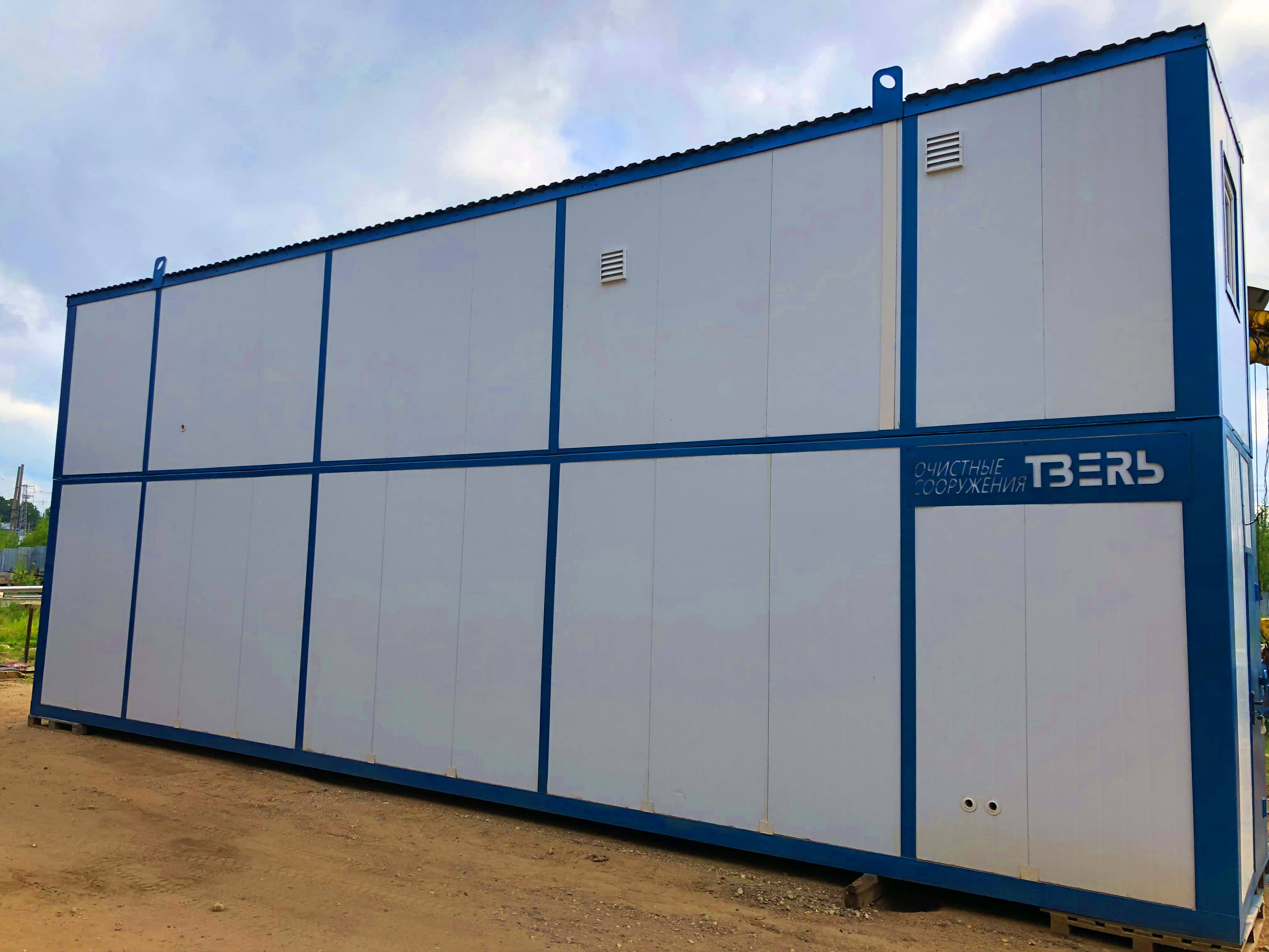 Станция очистки бытовых сточных вод "ТВЕРЬ-50С" представляет из себя утепленное здание из блок-модулей, установленных на фундаменте, со всем технологическим оборудованием внутри.